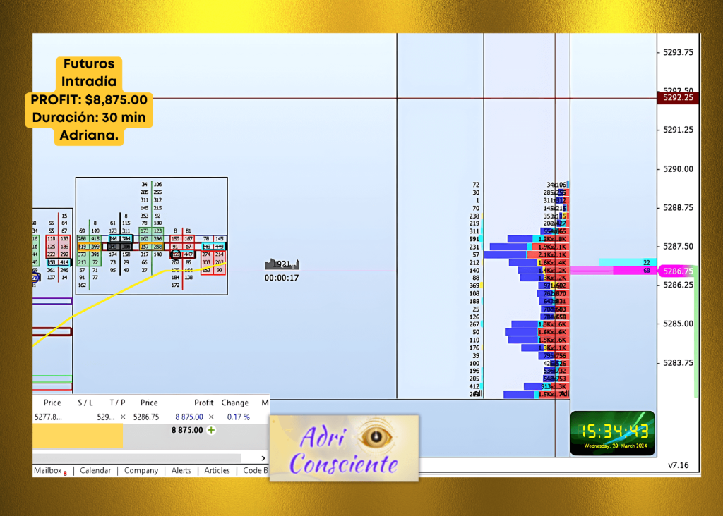 Hola, encontre los cursos de entrenamiento de Adriana muy valiosos, la información y enseñanza de como trabajan y se mueven los mercados es muy importante para hacer trades en futuros, para mi especialmente en el S&P 500 Micros. Adriana explica con mucha Claridad como se mueven los mercados y las velas Japonesas, y mi favorito es “El Cluster”…