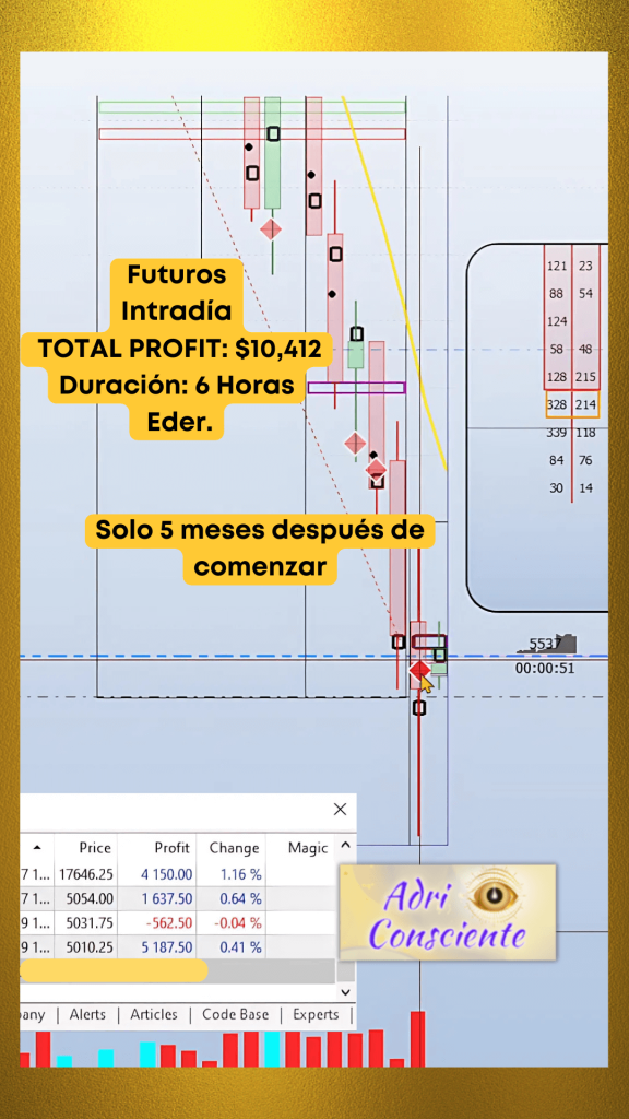 “Tomar este curso no solo ha sido una experiencia de aprendizaje técnico sobre futuros y opciones, sino un verdadero despertar espiritual y personal. Bajo la guía sabia y amorosa de mi Master Adriana, comprendí que el verdadero enfoque del trading no debe ser el dinero en sí, sino el recorrido, el proceso y la transformación que ocurre en nuestro interior mientras lo vivimos.”